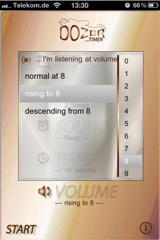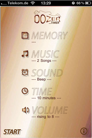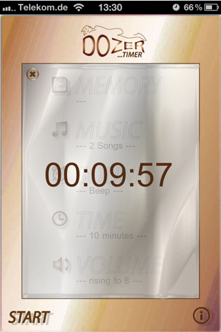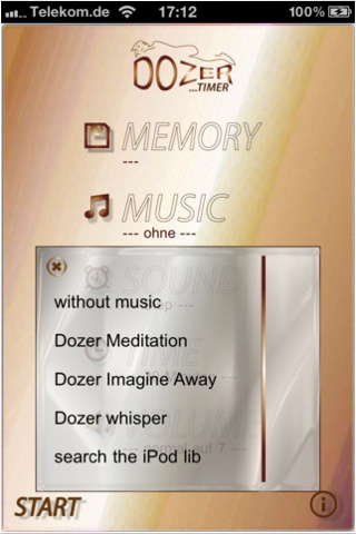 Stress causes extensive tension in our bodies. This muscular tension has a negative impact on our well-being, deprives us of energy and disturbs our emotional balance. DOZER offers a simple solution for avoiding these stress-related unhealty implications. Developed with the help of yogateachers and therapists DOZER provides a basis for real relaxation. Doze off immediatly and relax totally! (Suitable for all ages.) Choose your own music from your playlists und save your personal recreation designs in your Dozer-Timer.... for every situation the perfect template.